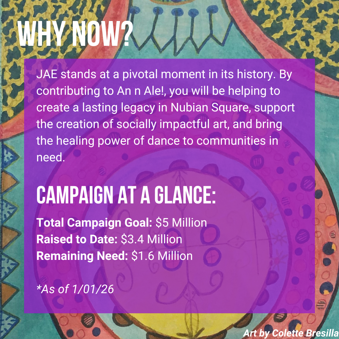 Objective: Establish a permanent home for JAE, becoming a cultural anchor in the historically significant Nubian Square.